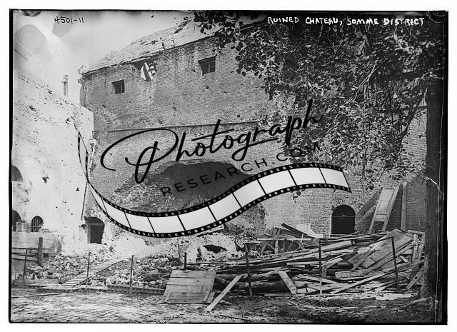 Chateau,Somme district,France,damaged building,rubble,Bain News Service