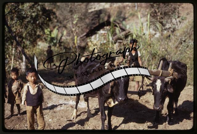 Ploughing Rice Terraces,Old Methods of Farming,Cattle,Lachung,India,Children