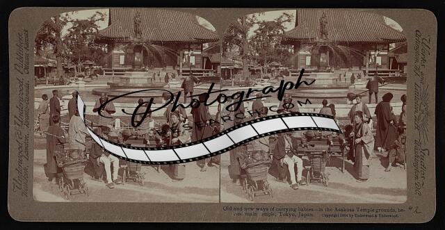 Old and new ways of carrying babies--in the Asakusa temple grounds, behind main temple, Tokyo, Japan