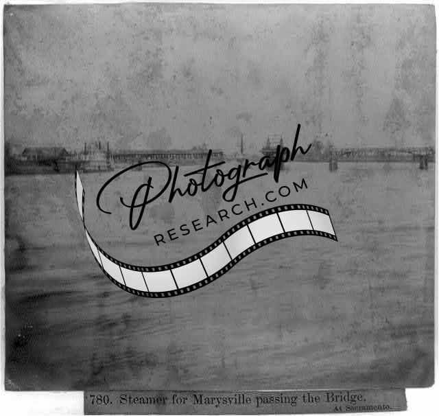 Steamer for Marysville passing the Bridge,at Sacramento,California,CA,1866