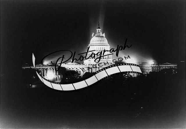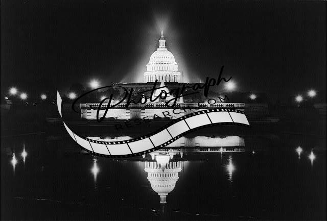 Night View,U.S. Capitol,Reflecting Pool,from North Plaza,Illuminated,c1939