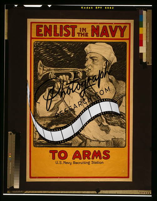 Enlist in the Navy,Recruiting,Sailor blowing bugle,1917,WWI,War Poster Photo