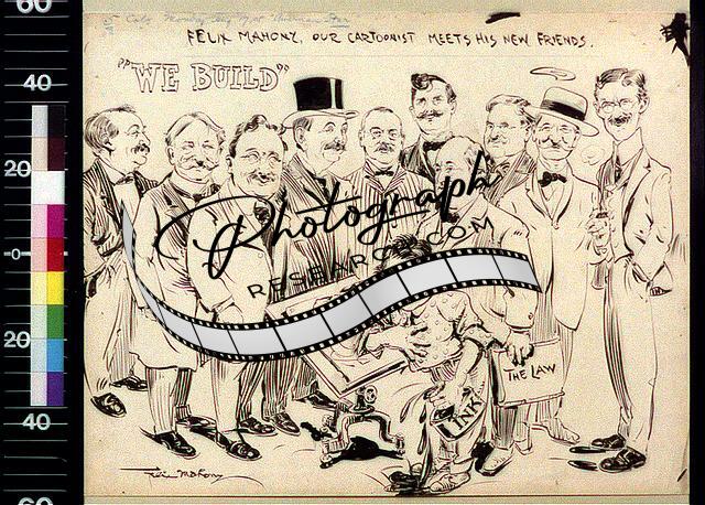 Felix Mahony,our cartoonist meets his new friends,Newspapers,August 1908,Cartoon