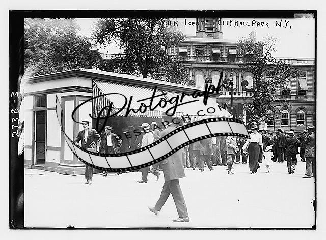Milk 1 cent - City Hall Park,N.Y.,New York,Milk Depot,1910-1915,ran by N Straus