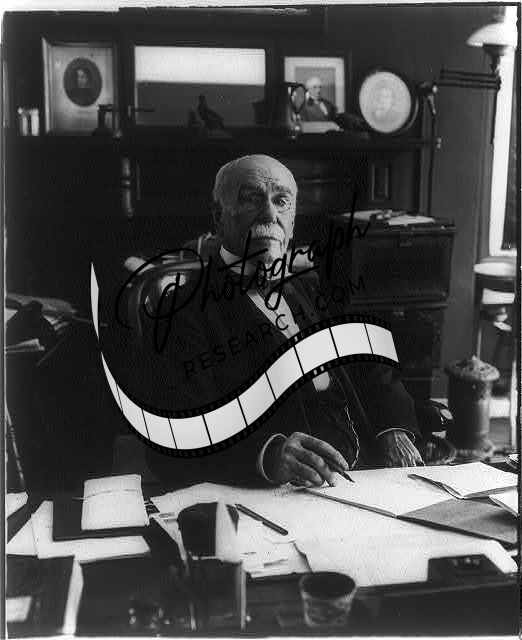 Dignified,Elderly Man,Office Desk,Pen in Hand,c1906,Wearing Suit Jacket