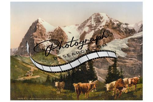Wengern Alp,cowkeeper milking cow,Bern,Switzerland,1895