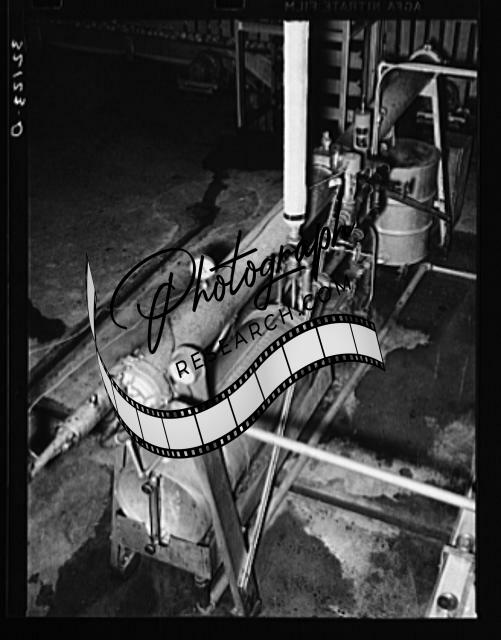 Title: Cans are fed by gravity to a sterilizer and they are then filled in a rotary machine at the grapefruit juice canning plant. Weslaco, Texas