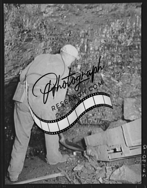 Title: Shoveling coal into a conveyer loader, Old Ben number eight. West Frankfort, Illinois (see 26980-D)