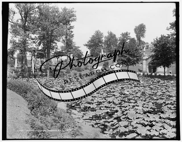 Greenwood Cemetery,burial grounds,lily ponds,flowers,Brooklyn,New York,NY,1900