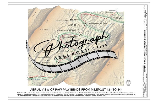 Title: Site Map, Eastern Portion, Milepost 125 to 145 - Western Maryland Railway, Cumberland Extension, Pearre to North Branch, from WM milepost 125 to 160, Pearre, Washington County, MD