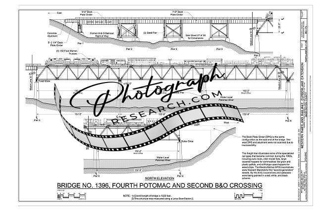 Title: Bridge No. 1360, Third Potomac and C&O Canal Crossing - Western Maryland Railway, Cumberland Extension, Pearre to North Branch, from WM milepost 125 to 160, Pearre, Washington County, MD