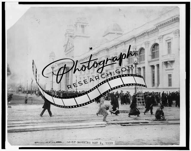 People outside building,World's Columbian Exposition,morning,Chicago,IL,1893