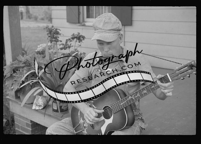 Title: One of the Westmoreland homesteaders playing his violin, Pennsylvania