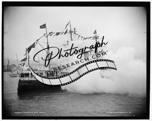 Fourth of July salute,American government vessel,parades,Detroit Publishing,1893