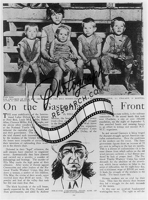 Picture stores of Gastonia,N.C.,labor unrest,1929: Ella May,Labor Defender