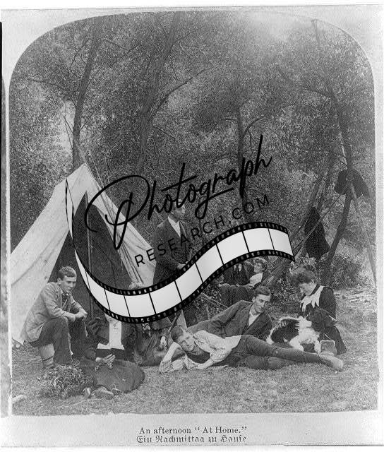 An afternoon 'At home',Young Couples,Man,Tent,c1894,Camping,Wooded area