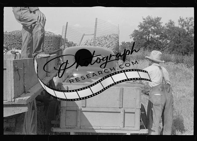 General caption for this series of images: The thresher is generally owned by the engineer who may own a half dozen threshers. The crew is recruited from neighboring farms and from neighboring towns. Often are mechanics, store clerks, etc.