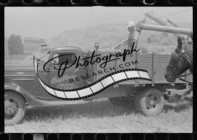 Filling truck with threshed grain,central Ohio,OH,Summer 1938,FSA,Ben Shahn