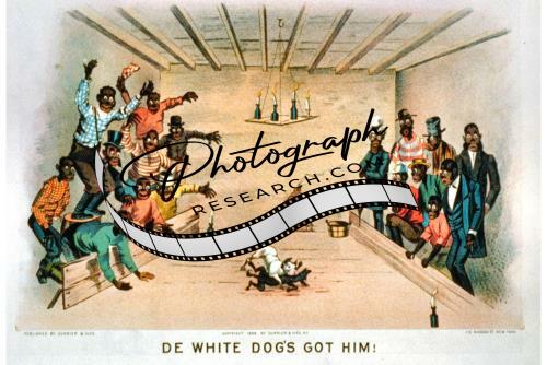 De white dog's got him!,Darktown Comics Photo,c1889,dog fighting,men cheering