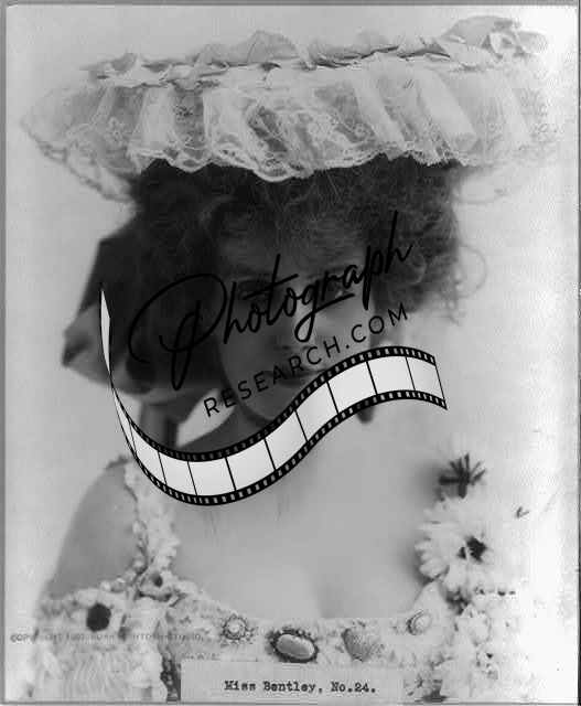 Miss Bentley,No. 24,young woman wearing hat,low-cut jewelled dress,fashion,c1902