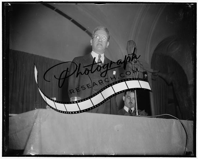 Title: Whispers Washington, D.C., Feb. 28. Senator James J. Davis (left), Republican of Pennsylvania, gets another earful from Bernard Baruch following the noted Financier's blaming of the new deal policies for present unemployment before the Senate Unemployment and Relief Committee today. Baruch particularly criticized the present undistributed profits and capital gains taxes, 2/28/38