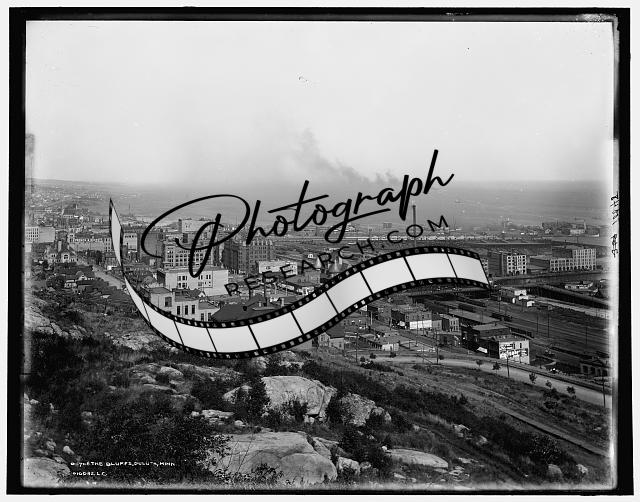 Bluffs,buildings,streets,roads,structures,smoke,rocks,Duluth,Minnesota,MN,c1898