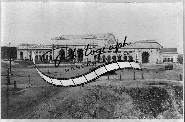 Union Station,Washington,D.C.,c1912,exterior view,trolley cars,person walking