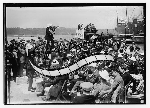 Welcome,Whiteman,boats,ships,water vessels,crowds,bands,musicians,smokestacks 1