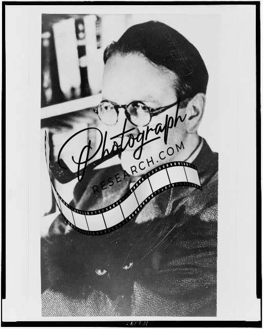 Raymond Chandler,with pipe,holding cat,American Novelist,Screenwriter,1954