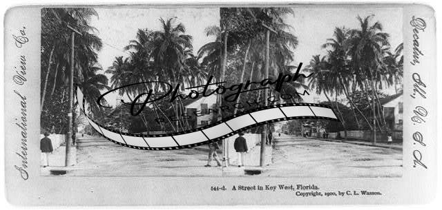 Photo of Stereograph,Street in Key West,Florida,FL,Palm Trees,c1900,Man