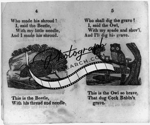 Title: [Illustrated pages from various early editions of the story of the death and funeral of 'Cock Robin', reproduced by the LCQJ, April 1973]