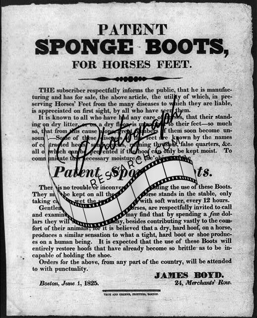 Patent sponge boots,Horses feet,James Boyd,Boston,MA