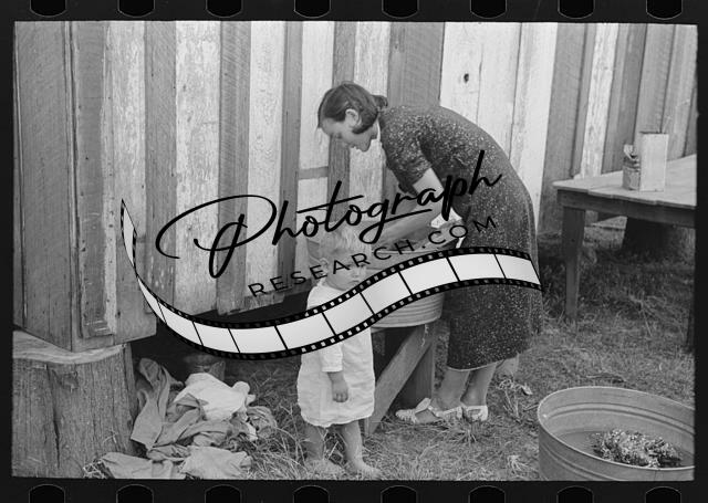 Title: Wife of FSA (Farm Security Administration) client who will participate in the tenant purchase pouring dishwater into slop pail, near Morganza, Louisiana
