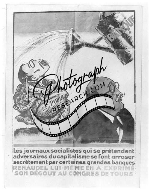 French political cartoon,Renaudel,Socialist leader,watering can,1935?