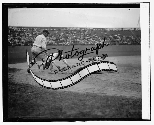 Yankees catcher Wally Schang slides safely into 3rd base in second game,1924
