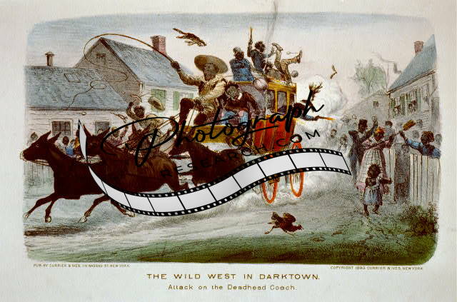 Wild west in darktown: attack on the deadhead coach,Darktown Comics Photo,c1893