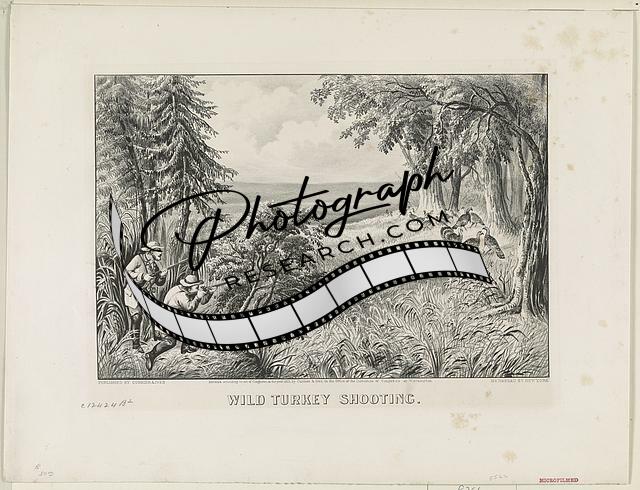 Wild turkey shooting,hunters,rifles,birds,wooded area,c1871,Currier & Ives Photo