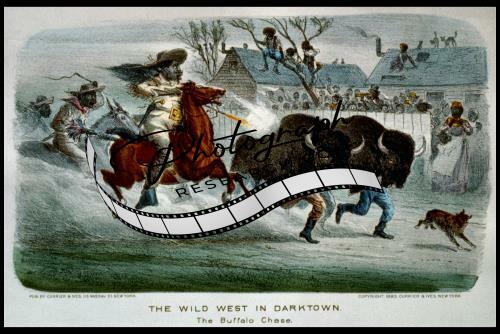 The wild west in darktown: the buffalo chase,Darktown Comics Photo,c1893,horses