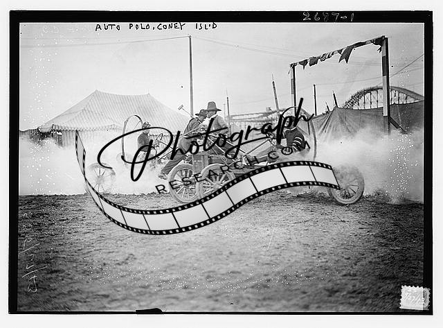 Auto Polo,Coney Island,New York,1910-1915,automobiles,men,dirt