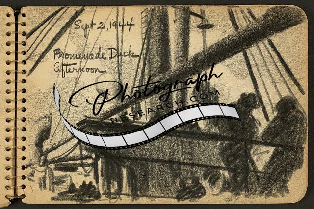 Promenade deck,ship,soldiers,military personnel,ocean travel,Europe,V Lundy,1944