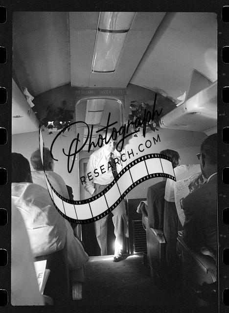 Republican presidential candidate Dwight D. Eisenhower talking with reporters(?) on his campaign airplane
