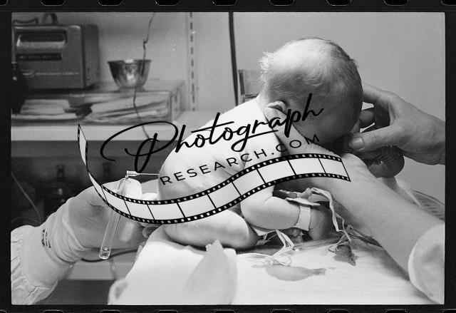 Spinal tap being performed on a newborn baby to detect presence of infection