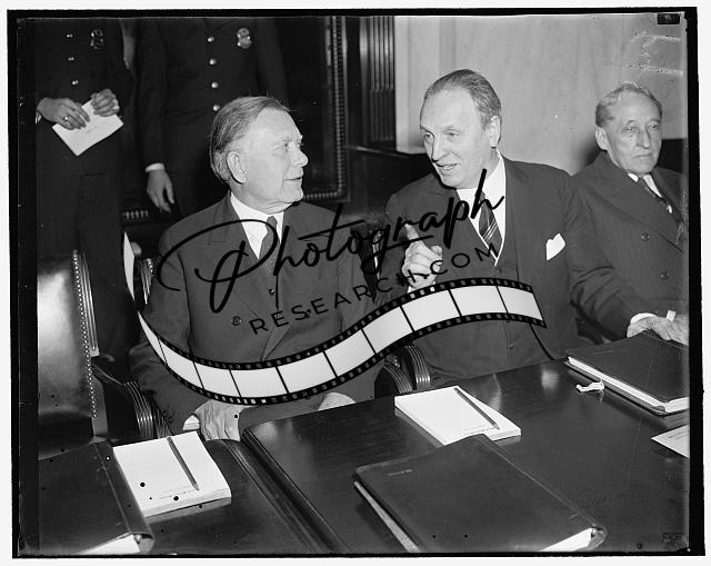 Title: Bosses of Senate and House admire portraits by Christy. Washington, D.C., March 10. Vice President Garner and Speaker of the House William B. Bankhead view the oil portraits of themselves by Howard Chandler Christy, (left) noted American artist. The portrait of Speaker Bankhead is completed but the one of Vice President Garner has yet to receive the finishing touches, 3/10/1937