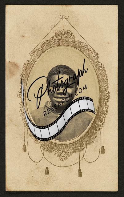 Summary: Photograph shows a full-length portrait of a young African American man or teen, identified as a servant, standing next to a pillar.
