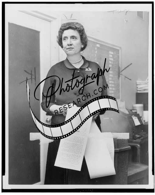 Mrs. Charles Ulrick Bay,Josephine Bay,standing in her office,1956