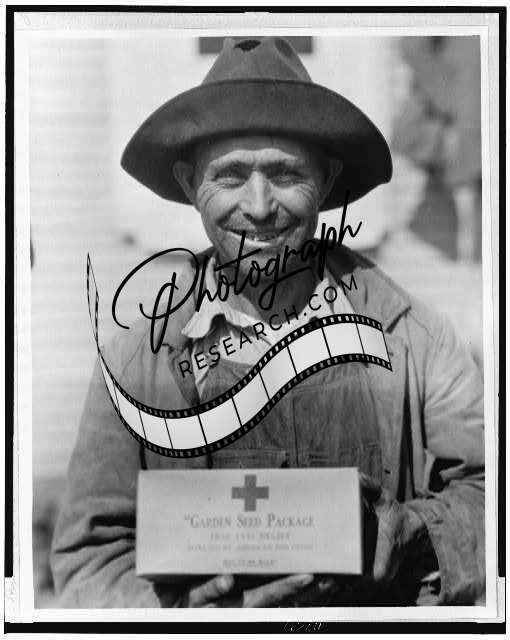 Arkansas Farmer holding Red Cross garden seed package,Stuttgart,c1930,Relief