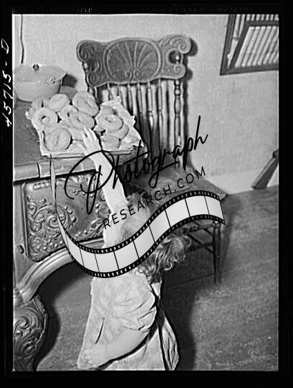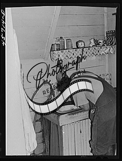Title: Mrs. Gaynor washing dishes on their farm near Fairfield, Vermont