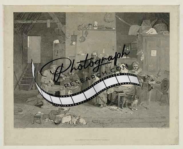 Interior scene with family gathered around man playing fiddle,John Burnet