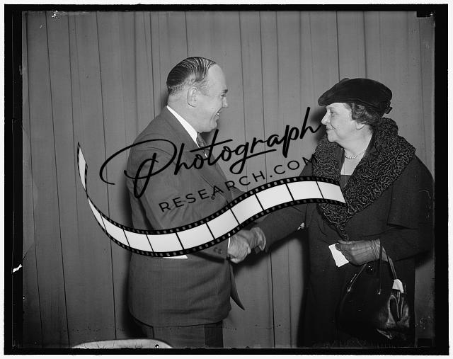 Frances Perkins,George L Berry,conference,Industry,Labor,shaking hands,1936