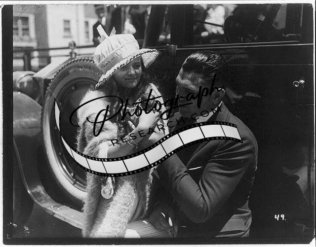 Title: Jack Dempsey at his training camp, June 1921: sitting on auto with man; being filmed